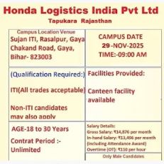 Honda Logistics Pvt. Ltd. Recruitment 2025ITI Pass Recruitment Vacancy 2025 |