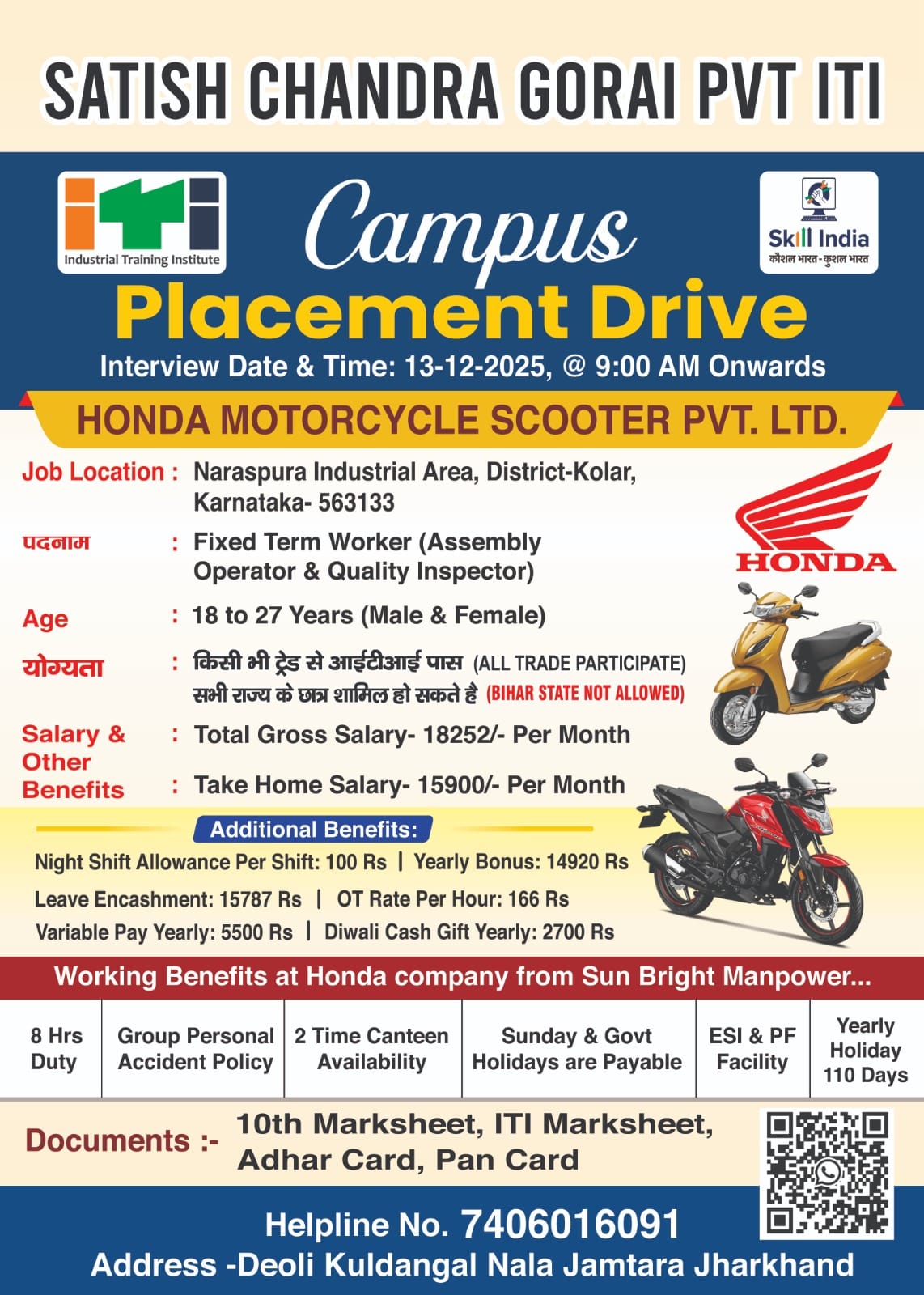 - Venue : Govt. Satish Chandra Gorai Pvt. ITI, Deoli Kuldangal Nala Jamtara, Jharkhand