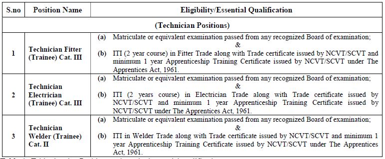 - Candidate should have passed Matriculation & ITI Pass (NCVT / SCVT) in or relevant and higher qualification (Minimum 2 years course) in respective discipline from any institute recognized by the Government