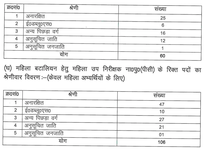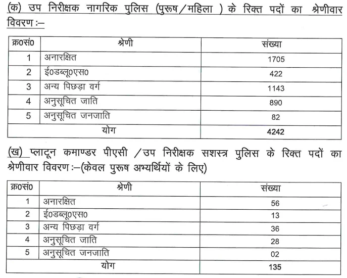 UP Police SI Recruitment 2025 Post Wise Details